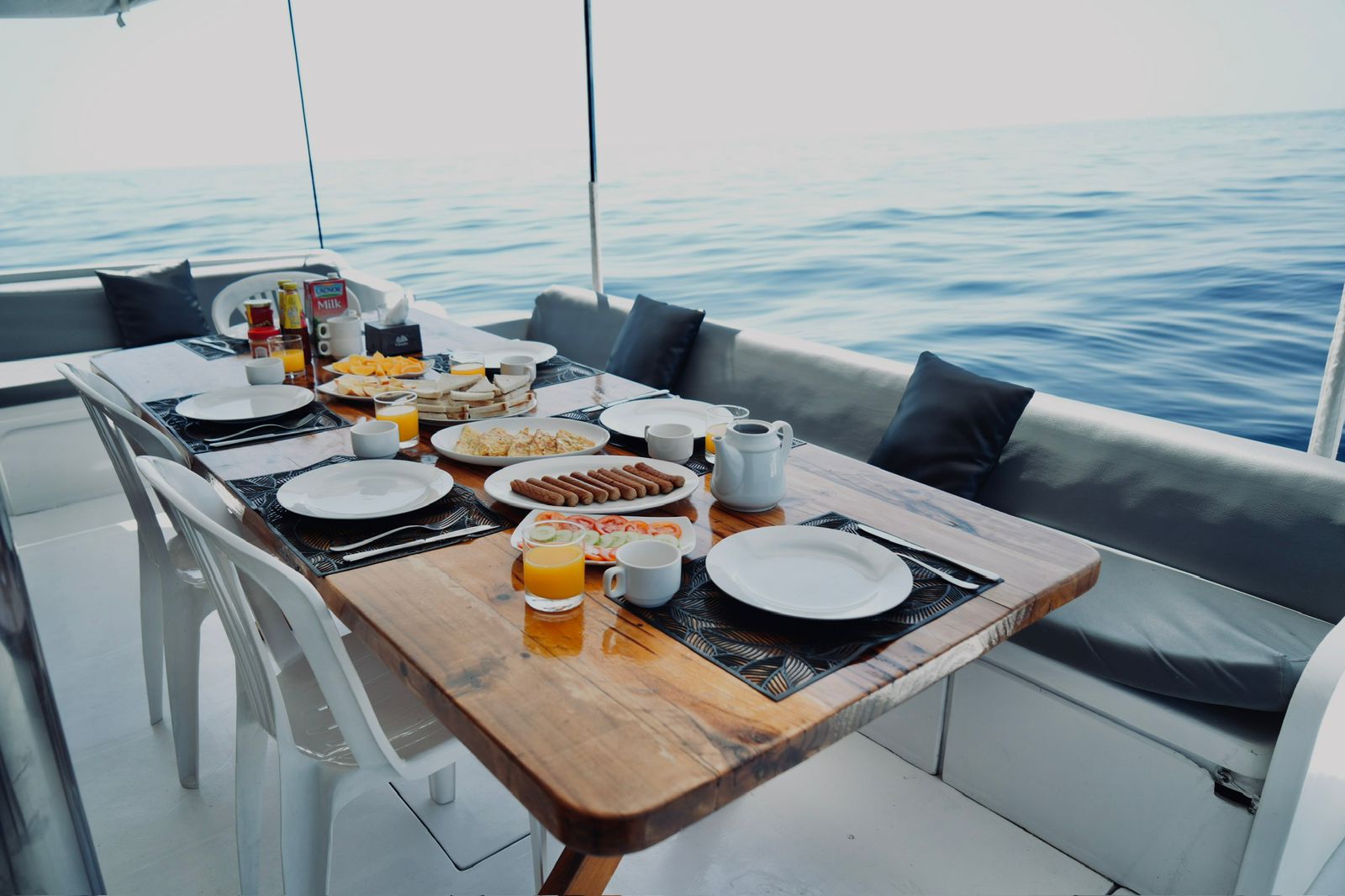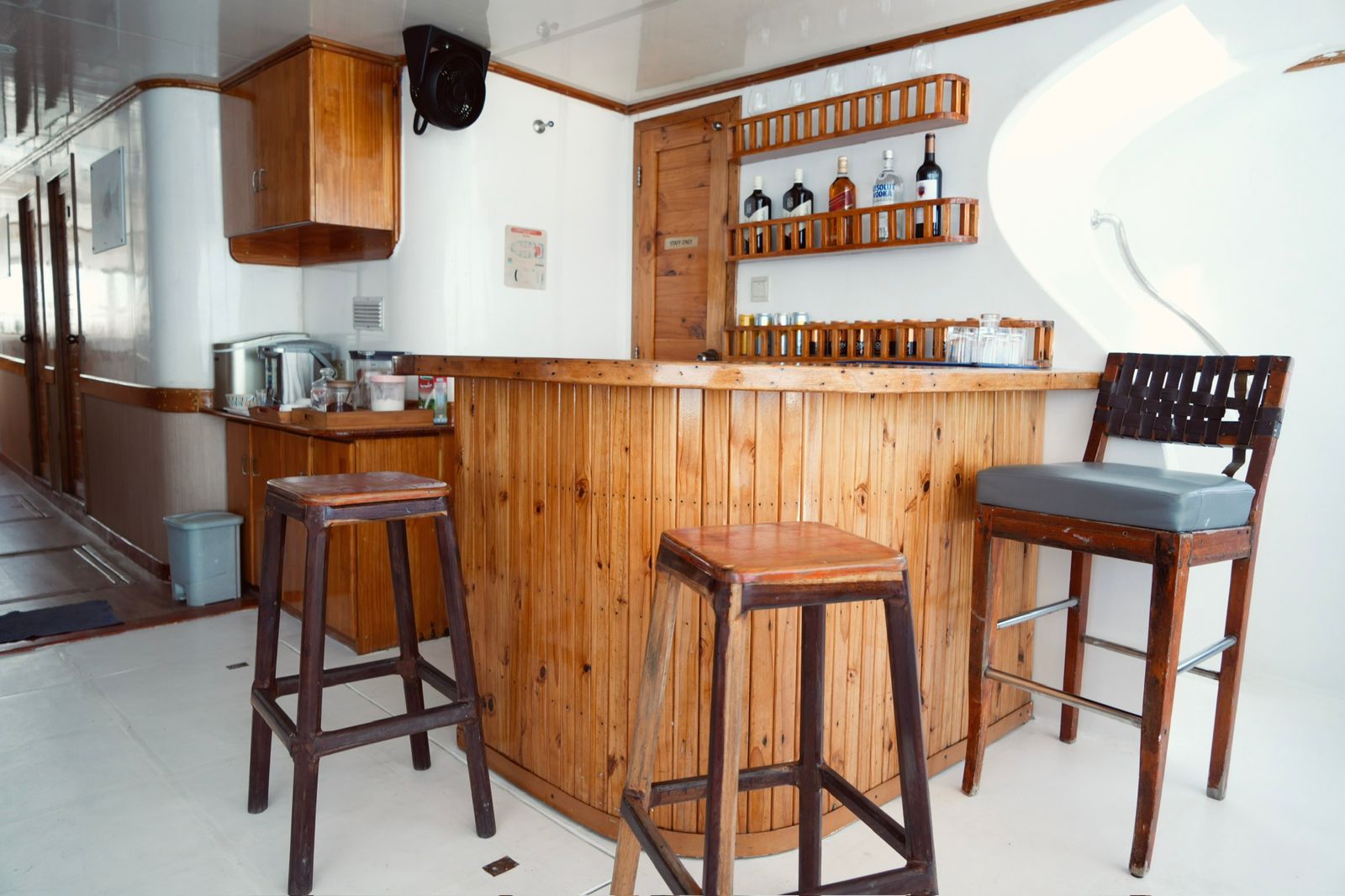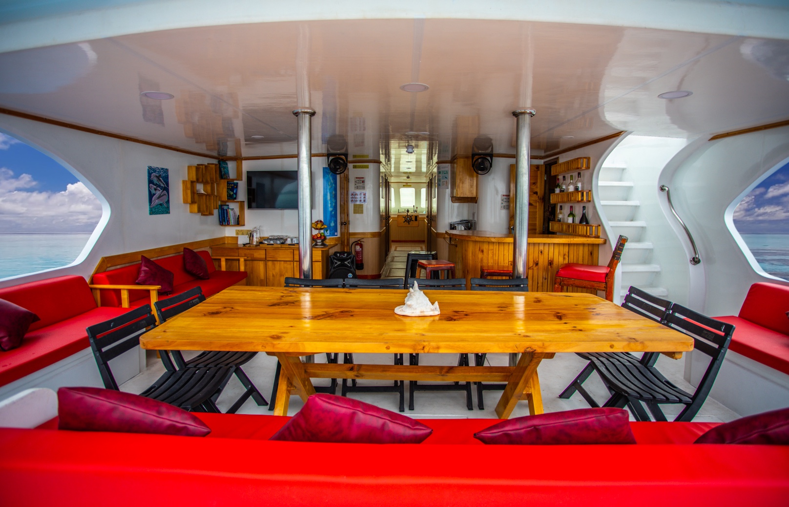 Our tour starts and ends at the airport in Male and includes transfers. The ship accommodates up to 8 guest in 4 air-conditioned double cabins. After everyone has settled in, the island adventure begins!